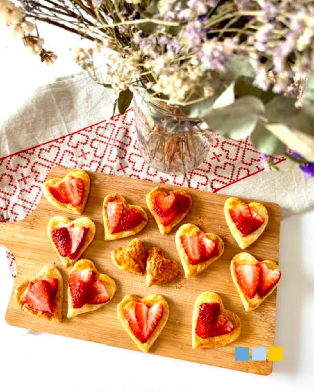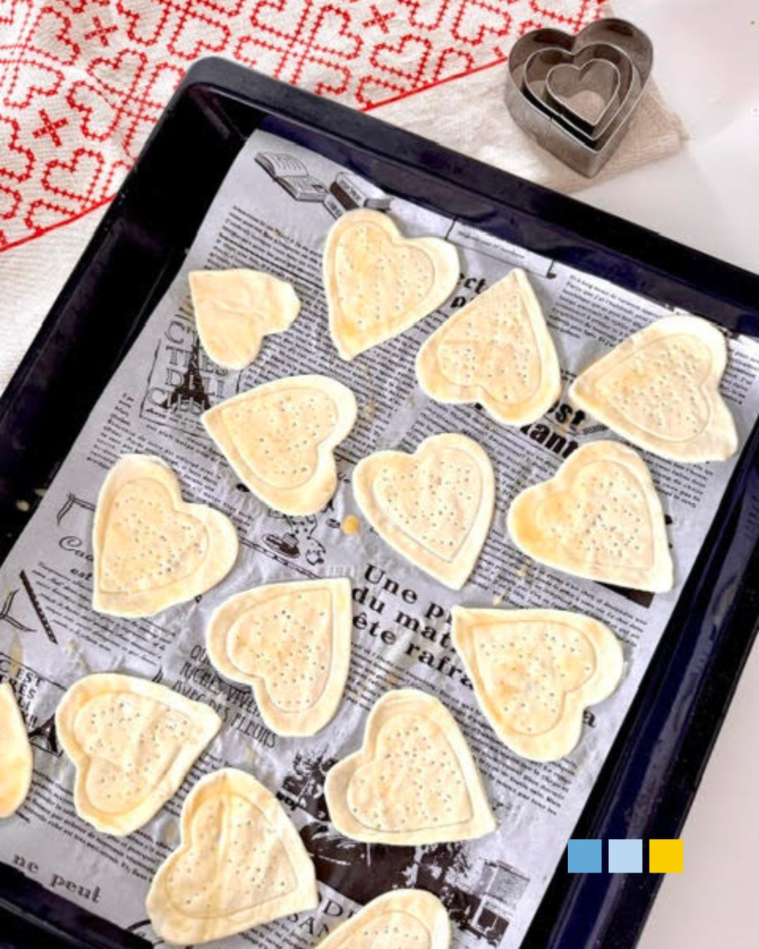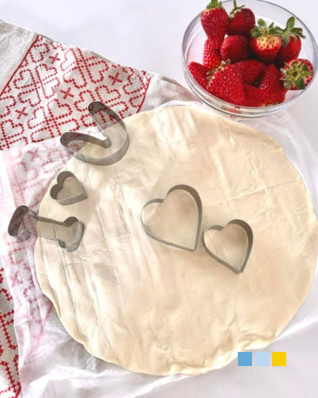 Para prepararlos y dar forma de corazón al hojaldre necesitarás un cortador de galleta con esa forma. Si no tienes, podría hacerse recortando con un cuchillo y una plantilla impresa en papel.